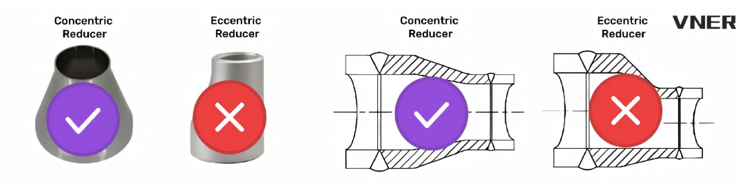 Esta coincidencia de diámetro generalmente se logra usando reductores concéntricos .